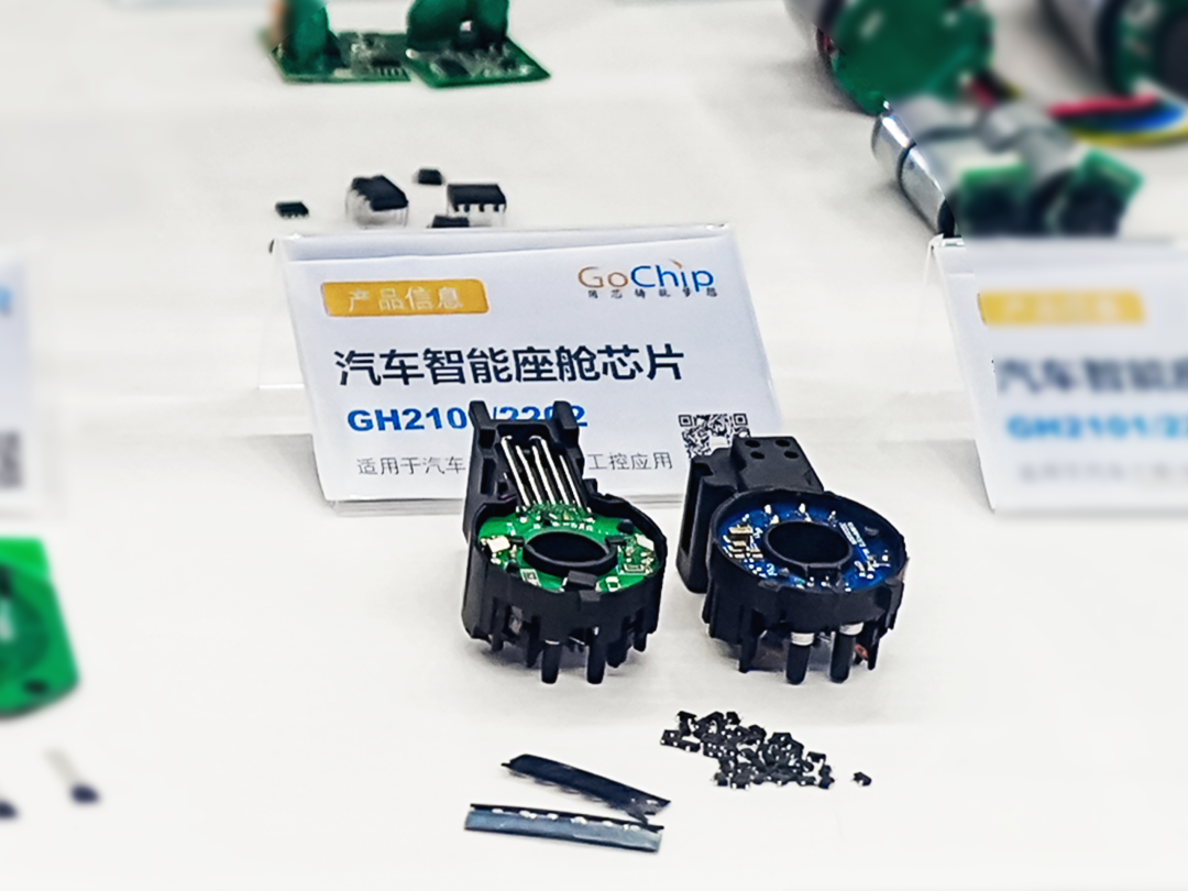 在磁传感器领域,我们带来了通用磁传感器、马达驱动芯片、齿轮传感器、智能座舱传感器、电感式接近开关、漏电保护芯片等多款产品,可广泛应用于新能源汽车、工业自动化、消费电子、智能家电、机器人等领域。重点展出汽车智能座舱传感器GH2101/2202系列,满足AEC-Q100标准,可应用于汽车座椅、车窗/天窗、侧滑门/电动尾门等电机的方向和位置检测。