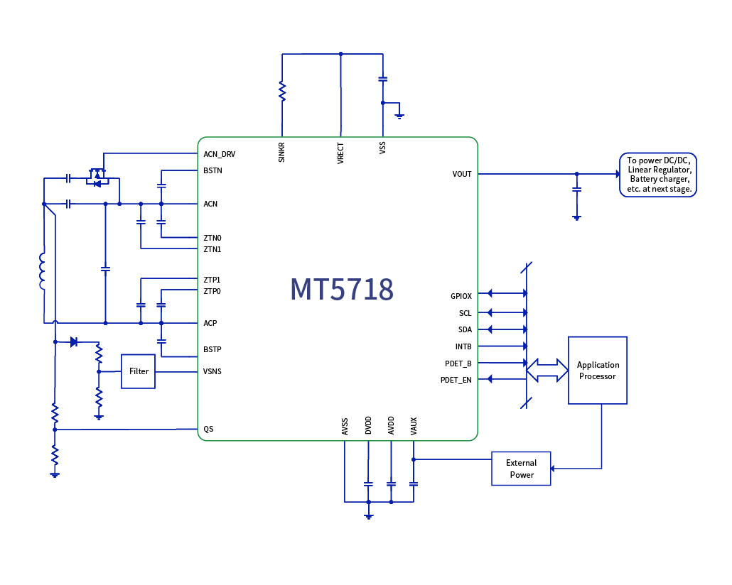 With only a small number of external passive components required, MT5718 integrates all necessary components for a wireless charging receiver. Its 2.5 mm × 3.3 mm package occupies minimal PCB area, enabling more compact and aesthetically refined designs for smartphones and other devices, while also facilitating improved waterproof and dustproof performance.