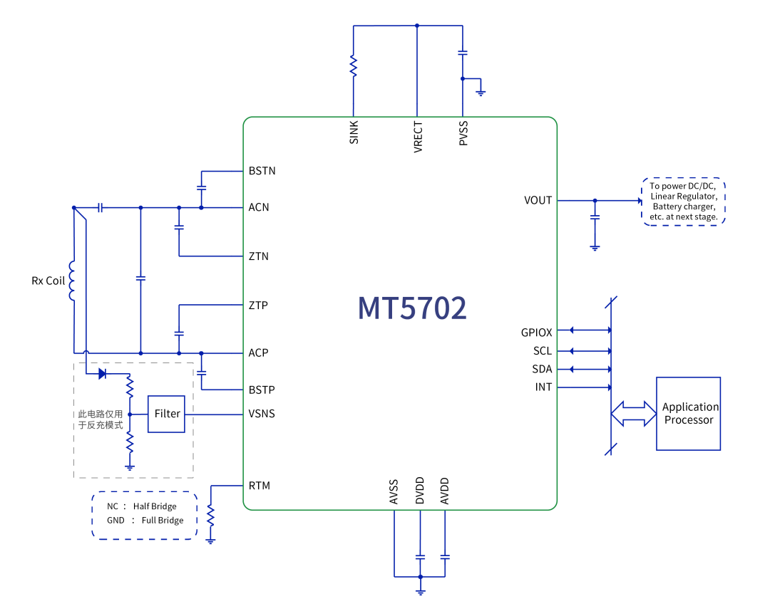 The highly integrated wireless charging receiver MT5702 supports the WPC Qi 1.3 standard and integrates an ARM Cortex-M0 processor, synchronous rectifier, LDO, and various protection circuits.