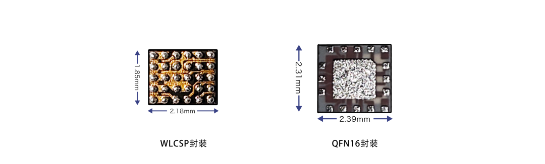 Dual ultra-compact package options: 1.85 mm × 2.18 mm (WLCSP) and 2.31 mm × 2.39 mm (QFN)